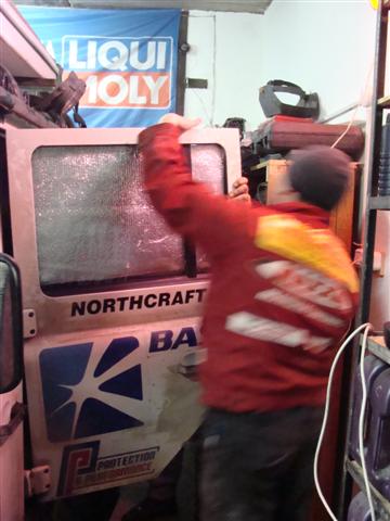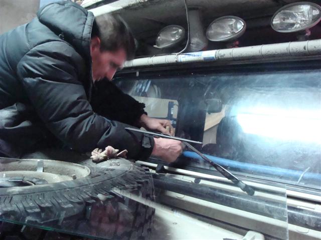 Insulating, double glazing, studding and hot airpipe onto windscreen modifications.