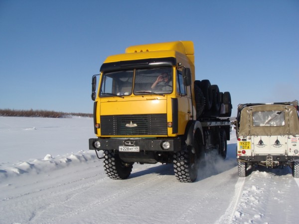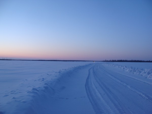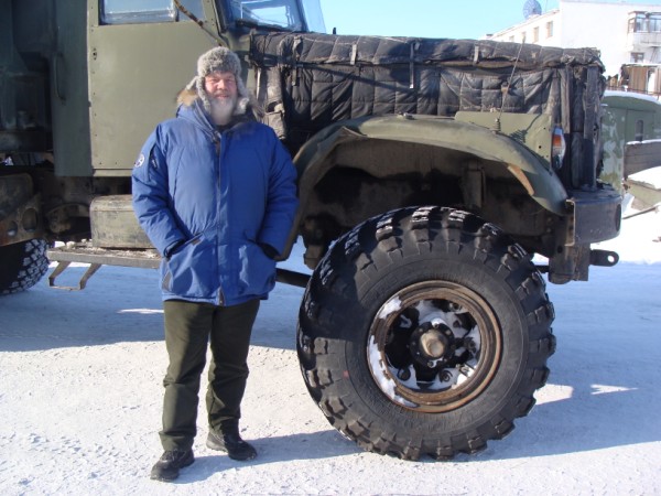 The scenery is very beautiful and we are travelling along the snow road on the River Kolyma which winds from side to side of the river but is reasonably well maintained and level! We are unsure of the truck situation in Pevek; Sergei has a contract starting on the 5th April in Magadan but has said that if we make good progress he would be able to continue at least until Schmidta.